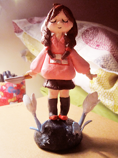 Little Madotsuki from Yume Nikki sculpture that I made for all-round coolguy John's birthday! She's made from Sculpy and painted with acrylics.